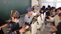 3月3日 今日の給食はひなまつり献立の行事食でした。食缶のふたを開けてびっくり!!栄養士さんと調理員さんが心を込めて、にんじんやタケノコなどを綺麗に飾っておかずを詰めてくださっていました。その様子を見た子供たちは大喜びでした。そして、おいしくて彩り豊かななちらしずしを笑顔で食べていました。詳しい献立は「今日の給食」をご覧ください。