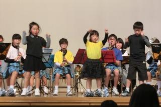 本校からは、吹奏楽部が「フラワークラウン」「鉄腕アトム」「RPG」を、さらに田原中吹奏楽部と一緒に「学園天国」を演奏しました。また、初舞台となる放課後子ども教室(くれよんきっず)の1年生から6年生が、大正琴で「さくらさくら」「もみじ」を演奏しました。