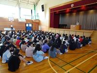 本校と中学校は目と鼻の先にあり、互いの行き来が多く、教職員からすると慣れ親しんでいる感じですが、子供たちはやはり緊張していたようです。慣れない場所に戸惑いながらも、一生懸命に先生方や先輩たちの話を聞いていました。