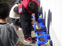 3校時には,いつもお世話になっている「下田原エコワークシェアーズ」の皆様と共に、3年生から5年生の子供たちが校庭のプランター,正門そばの花壇,学校のそばの山田川ぞいの花壇に,マリーゴールドとサルビアの苗を植えました。