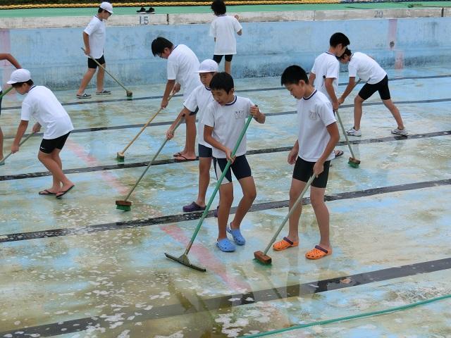 コロナウィルス感染拡大により水泳学習の実施が危ぶまれましたが,体育の授業と同じような対策を講じることで実施することにしました。