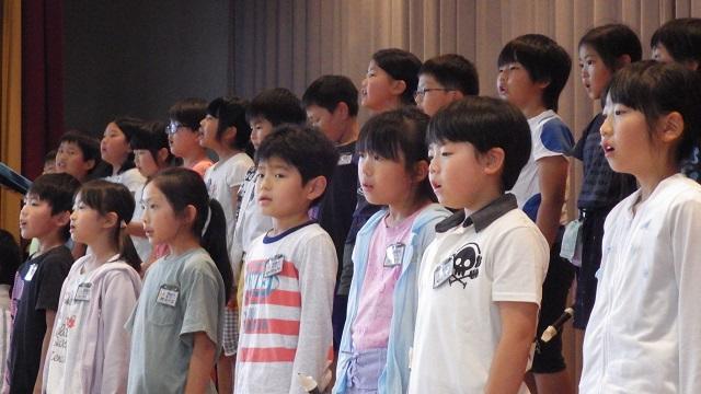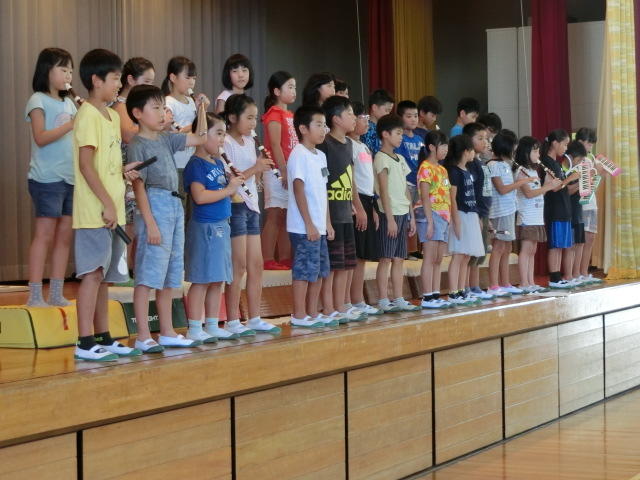 1年生の音楽集会が行われました。曲目は「ハローハロー」,「キラキラ星」,「けむしが3びき」でした。