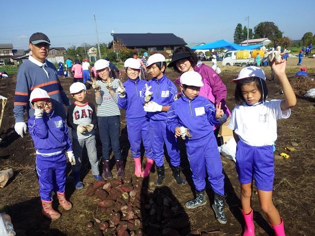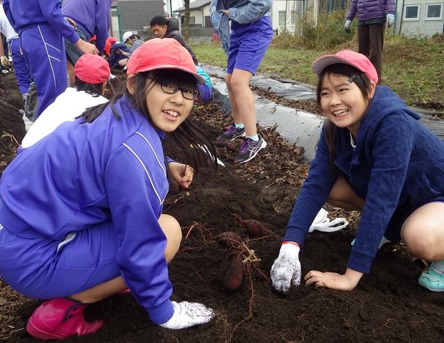 大きく育ったさつまいもをみんなで一生懸命に掘りました。鈴なりになったものや太く大きく育ったものまで,いろいろな形のさつまいもがたくさん収穫されました。