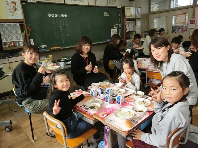 保護者の皆様と一緒に給食を食べる子供たちはとても嬉しそうで,完食している子がたくさんいました。