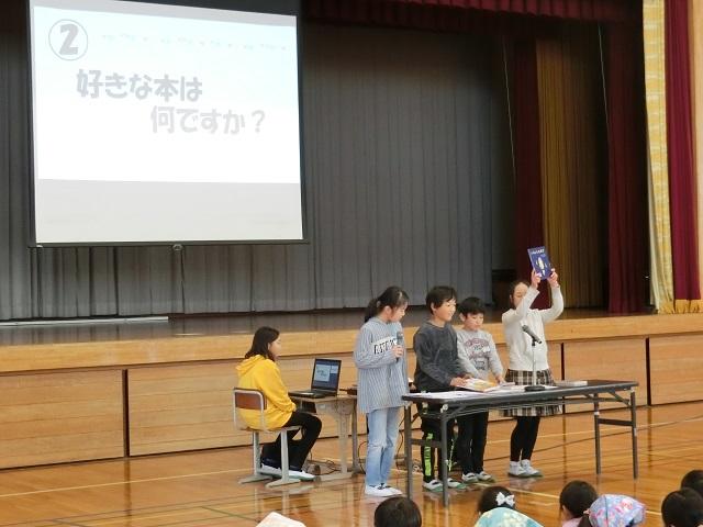 その後,「好きな本」「心に残った本」「好きな表紙の本」「これから読みたい本」などのランキングをクイズ形式やインタビューを取り入れて楽しく発表しました。