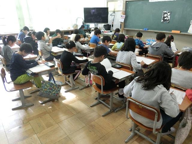 今日は,全校一斉の学習内容定着度調査の日です。4教科のテストを受けるのは6年生で,その他の学年は学習と生活のアンケートのみです。