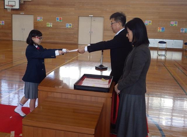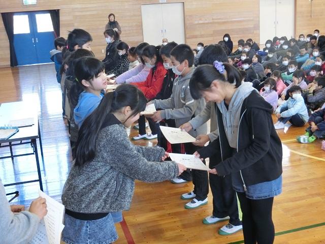 式の前に,前期の「田原っ子賞」表彰が行われ,本校の教育目標「かしこく なかよく 元気よく」をしっかりと実践してきた各学年1名の子供達が表彰されました。