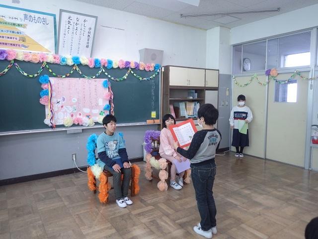 その中で,業間の「たわらの時間」には,図書委員会の子供たちが中心となって「読書週間イベント」が開かれました。テーマは「レッツ家読!」毎月設定している家読の日について,様々な家読のやり方を4つの劇形式で紹介しました。保護者の皆さんもたくさん参観していただきましたので,家読の取組がもっと広がるよう,ぜひご協力いただければと思います。