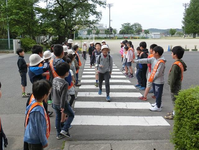 本日の一斉下校は,田原駐在所の木村所長さんに来ていただき,全校生に向けて交通安全の話をしていただきました。
