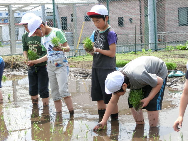 これからグングンと育つ稲。それを育てながら,米作りや地域の産業の特色,食の大切さ,命の大切さなど,子供達は一年を通して様々な学びを続けていきます。