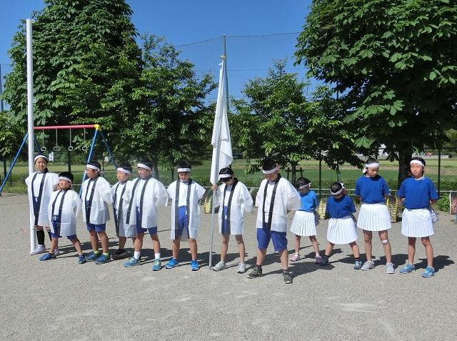 各学年の運動会に向けた準備や練習はすでに始まっていますが,いよいよ6年生による,運動会全体,特に開閉会式にかかわる練習もスタートしました。