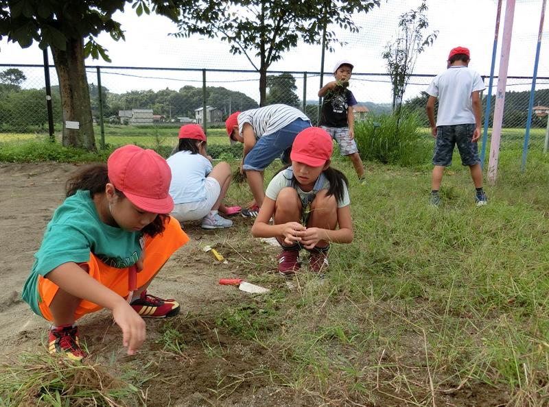 春先に学校農園に植えたさつまいもを,全員で収穫しました。