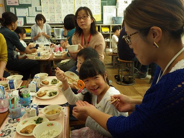 1年生の子供達は,自分たちでしっかりと給食当番の仕事をこなし,みんな楽しくおいしく給食を食べることができました。