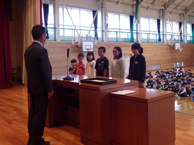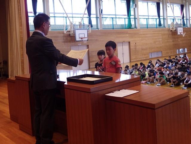 続いての修了式では,学年ごとに代表が修了証をいただき,全員が進級することになりました。校長先生からは,今年の頑張りと来年度の目標について講話がありました。