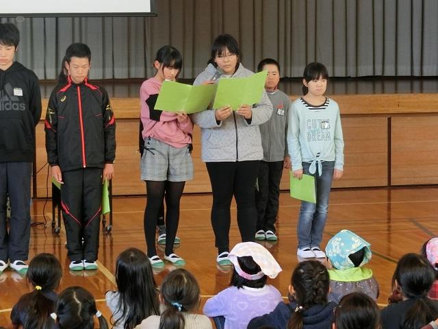 最後に,児童指導主任からは,あいさつや言葉遣いを頑張ったこと,引き続き頑張っていくこと,そして,春休み中の生活について話がありました。
