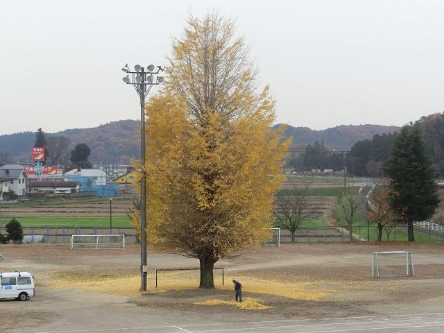 大銀杏は,黄金色に色づいた雄姿で,持久走に向けて頑張る子供達を見守っています。12/1の本番まで,この黄金色が輝いていてくれたらと願っています。