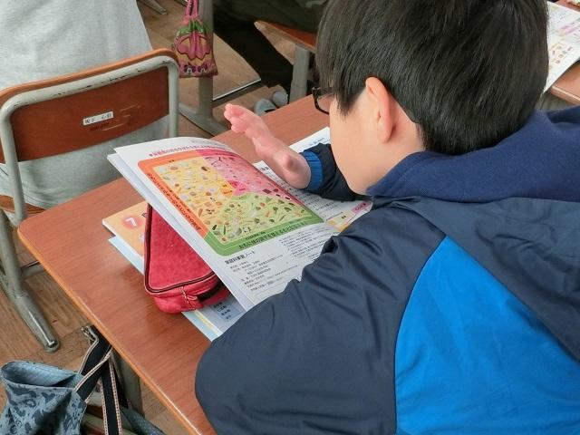 たわらの時間には,登校班を確認する「安全教室」が行われました。改めて上級生と1年生が顔を合わせ,集合場所や時刻とともに,安全な登校の仕方を確認しました。