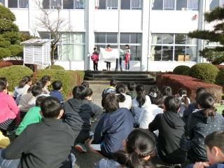 たわらの時間を利用して、卒業式の声かけの練習が先週から始まっています。今日は、6年生も加わり、初めての全体練習でした。6年生も、在校生も、立派な卒業式にしようと真剣に取り組んでいます。