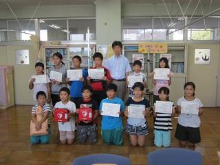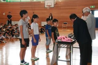 これは、本校の教育目標にある目指す児童像「かしこく なかよく 元気よく」に向け、それぞれの児童の努力を認め、励まし、表彰することで、豊かな心をもち心身ともに健やかで人間性豊かな児童の育成を目指すもので、本校独自の表彰制度です。