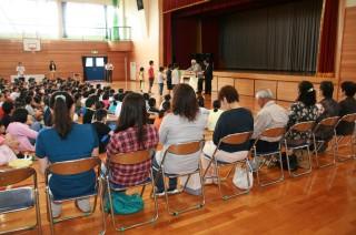 4年生の心と歌声はひとつになり、体育館に集まったみんなの胸に響きわたり、みんなの思いは空を伝って福島の海まで届いたようでした。