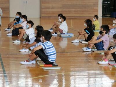 今年度、県の事業として行われている「体力向上エキスパートティーチャー派遣事業」により派遣された甫坂 茂樹先生が、本日、4、5年生の体育の時間に、投力の向上を目指すことをテーマとして、基本的な姿勢からご指導くださいました。同学年を対象に、年内に2回お世話になります。甫坂先生の御助言を生かし、本校の課題の一つである投力の向上を、今後も図っていきたいと思います。