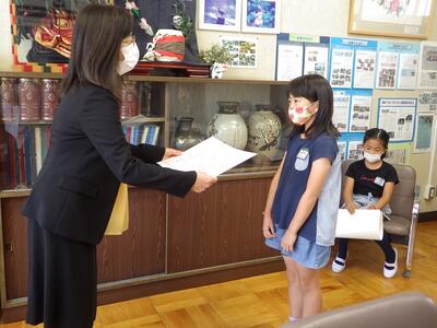 本日、校長室にて、感謝状の贈呈を行いました。