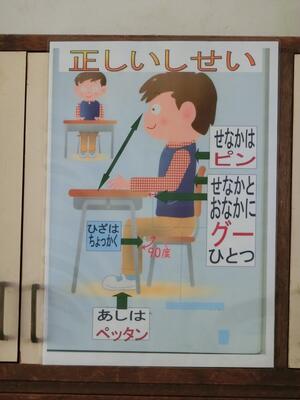 お昼の放送で、図書委員会による姿勢に関する本の読み聞かせがありました。