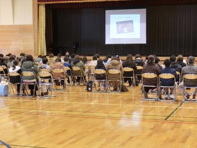 なぜ、姿勢をよくすることが必要なのかについてのビデオを全校生で視聴しました。