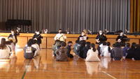 12月1日 ふれあい文化教室で、5年生が三味線を体験しました。一人ずつ三味線を持ち、「小さな世界」の演奏の仕方を教えてもらいました。バチを打つことで音を出す仕組みが分かり、上手に演奏することができました。鑑賞会では、「津軽じょんがら節」を聴きました。弦を弾く音とバチで皮を叩く音が同時に鳴って、迫力のある演奏を聴くことができました。日本の伝統的な楽器に触れ、日本音楽の独特な響きを感じることができました。