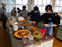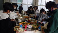 2月26日 小学校生活の締めくくりにバイキング形式で、6年生がお楽しみ給食を行いました。家庭科の学習で身に付けた知識を活かし、栄養バランスを意識して主菜や副菜を分量も考えて選ぶのは、生きた学びとなります。そして何より、豪華な特別メニューを、クラスの仲間と和やかに選んだり、食べたりするわくわくした気持ちは、小学校生活の楽しい思い出に残ることと思います。栄養士さんや調理員さん、心のこもったおいしい給食を用意してくださり、ありがとうございました。