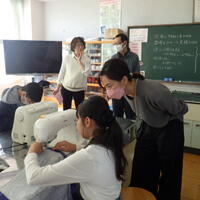 10月24日 6年生の家庭科「ソーイングで生活を豊かに」の学習で、エプロンを製作します。本日は、地域や保護者の皆さんが、ミシンやアイロンの安全な使い方、エプロンの縫い方をご指導くださいました。待ち針さしやしつけ、ミシン縫いは、子供たちには難しい作業ですが、ボランティアの皆さんのご支援のお陰で、どの子も手を止めることなく、スムーズに製作を進めることができました。