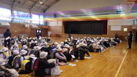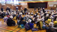 3月6日 全校下校で班長の引継式を行いました。これまで下級生の安全を気遣い、下級生の歩く速さに合わせて登下校してくれた班長さんに、みんなで感謝の気持ちをもちました。そして、新しい班長さんは、守られる側から、安全を確認する守る側に役割が変わりました。班員全員で協力し合って、安全に登下校していきましょう。