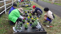 11月6日 みどりの日で、3,4,5年生が花壇の整備を行いました。地域のエコワークシェアーズの皆さんから、種から育てた色とりどりのパンジー、ビオラや葉ボタンの苗をいただきました。子供たちは植え方を話し合ってデザインや花の色の組み合わせを工夫して苗を植えました。新しいお花が植えられた学校や山田川沿いのサイクリングロードが明るくなりました。