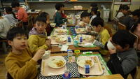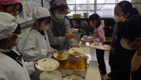 3月3日 今日の給食はひなまつり献立の行事食でした。食缶のふたを開けてびっくり!!栄養士さんと調理員さんが心を込めて、にんじんやタケノコなどを綺麗に飾っておかずを詰めてくださっていました。その様子を見た子供たちは大喜びでした。そして、おいしくて彩り豊かななちらしずしを笑顔で食べていました。詳しい献立は「今日の給食」をご覧ください。