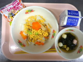 【給食】酢飯、牛乳、五目ちらしずし、