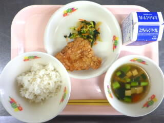 【給食】1/19(月)の給食 投稿日時 : 01/19 田原小学校管理者 カテゴリ: 【給食】麦入りご飯、牛乳、鶏の利休あげ、 おひたし、けんちん汁 利休あげとは、千利休が好んだとされる、衣に ごまを付けた揚げ物のことです。 {{options.likeCount}} {{options.likeCount}}