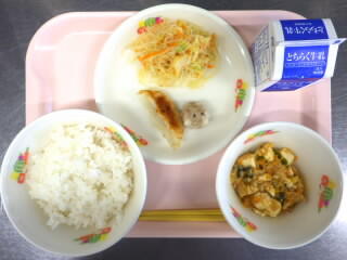 【お話給食】麦入りご飯、牛乳、蒸ししゅうまい、