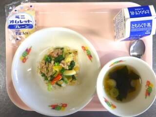 【給食】渋谷元気もりもり丼、わかめスープ、