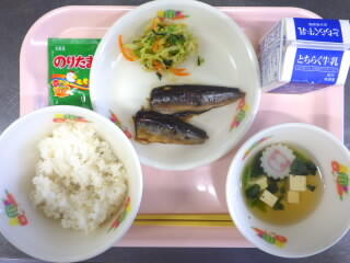 【給食】麦入りご飯、牛乳、セレクトいわし、