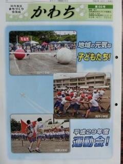 河内地区まちづくり協議会発行の「かわち」に本校の運動会(応援合戦の写真と獅子舞体操の記事)が掲載されました。河内地区の各家庭に配布になりますので、ご覧ください。