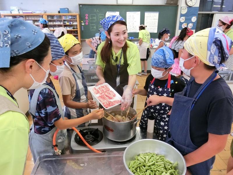 中学生もおかずづくり,6年生は炒め物の担当です。