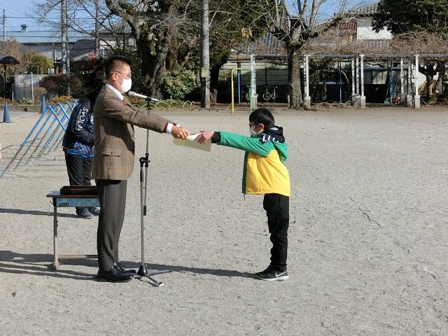 集会では,活躍した子供達への表彰が行われ,校長先生からは今年の漢字「密」をもとにしたお話がありました。また,冬休みの生活や注意点についての話もありました。