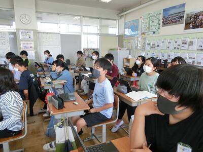 各自、ノートや教科書、資料集から調べたことを付箋に入力していきます。
