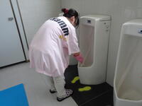 日頃の子供たちだけの清掃活動では,なかなか手の届かないトイレや水飲み場を中心にきれいにしていただきました。