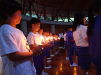 夕食後,3校(田原小・田原西小・田原中)合同でキャンドル・ファイアーが行われました。