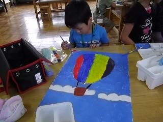 大きなキャンバスに絵を描きました。2日間にわたり、専門家のアドバイスを受け、色使いやデザインも大胆になりました。