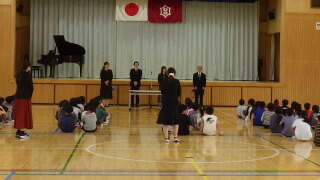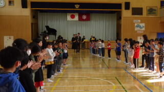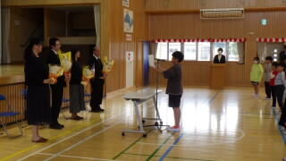 今日は3月で別の学校に異動された先生方の離任式が行われました。富屋小学校では5名の先生方が異動されました。残念ながら1人だけ欠席されましたが、4名の先生方を2~6年生児童が見送りました。花束の贈呈,代表児童によるお別れの言葉,最後は校歌の合唱で締めくくりました。異動された先生方のご活躍をお祈りします。