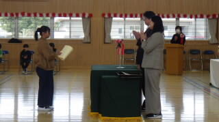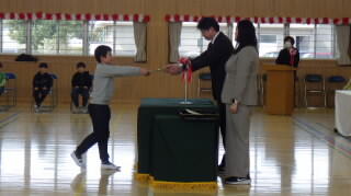 今日は卒業する6年生に関係する表彰式と卒業式の予行練習がありました。PTA会長から卒業記念品の贈呈もあり,該当する児童は小学校最後の表彰にとても緊張していたようです。続いて行った卒業式予行は入場から退場まで通して行いました。これまでの練習でどの学年の児童も流れはバッチリつかんでおり,厳粛な雰囲気で本番が迎えられそうです。