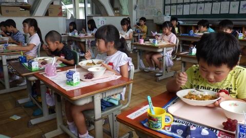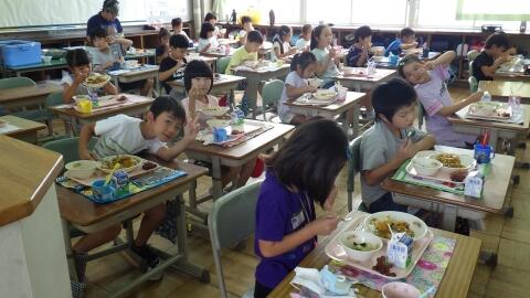 6月に学校を再開してから、「新しい生活様式」の一つとして、前を向いて黙って食べることを徹底してきました。夏休み明けでも、きちんと習慣づいています。