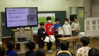 今日は3年生がこれまでホタルについて学習してきた内容についての発表会を行いました。お世話になったホタル愛護会の皆さんや3年生の保護者の皆さん,そして来年ホタル学習にチャレンジする2年生が参観しました。それぞれのテーマに沿って5つの班が,画像あり,コスプレあり,ホタルを光らせる仕掛けありで分かりやすく発表してくれました。とても質の高い発表となり,愛護会の皆さんもご満悦の様子でした。